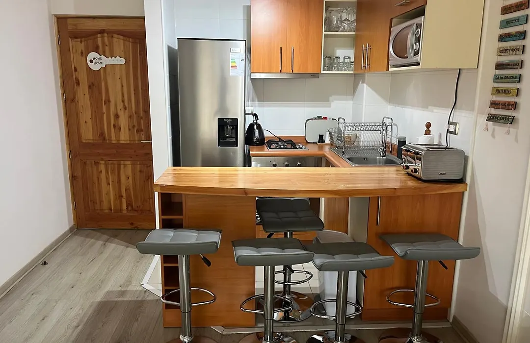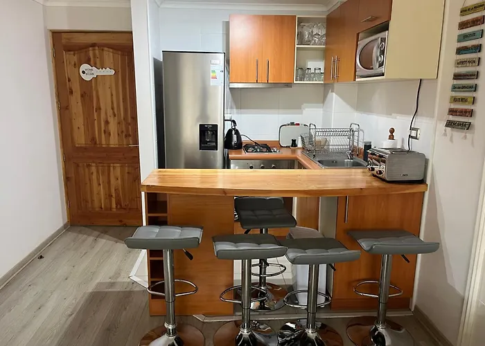 Departamento Pucon Lägenhet, som har en terrass, ligger 5 minuter till fots från Monasterio Santa Clara. Den här 51 m² stora lägenheten erbjuder moderna faciliteter som WiFi, samt en parkering för bilresenärer.